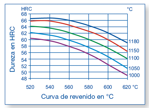 3 revenidos sucesivos a 560 °C comprendidos entre 1 y 3 horas con temperatura según el tamaño de las piezas.