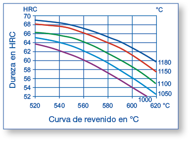 Segundo y tercer revenidos a partir de 560ºC en función de la dureza deseada.